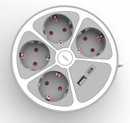 PROLONGADOR REDONDO 4VIAS+USB CON INTERRUPTOR 1.5MT
